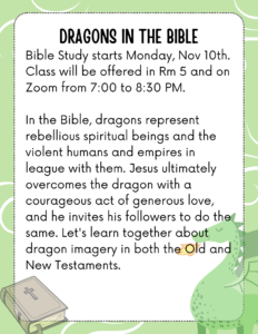 Bible Study is a place to grow deeper in faith, ask questions, and share life together. Whether you’re brand new to Scripture or have studied for years, you’ll find a welcoming space to explore God’s Word and how it connects to everyday life. Join us as we learn, pray,